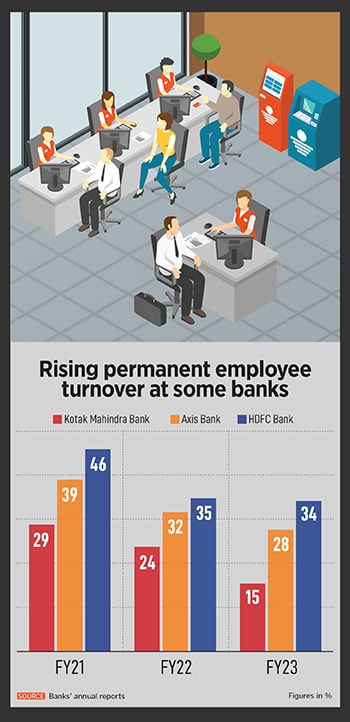 Rajkamal Vempati, president & head (human resources) at Axis Bank says: “Our experience shows that 60 to 70 percent of the talent moves within the banking ecosystem, another 20 percent moves towards other industries and just five percent leaves for personal reasons."