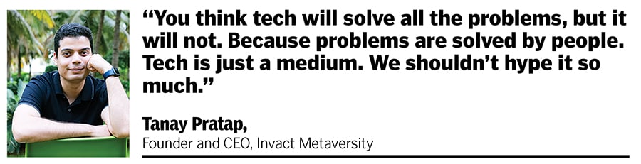 Technology is likely to solve a lot of problems but it is just a delivery medium, adds Invact Metaversity’s Pratap. “We shouldn’t hype it so much. The overhype works against tech. That’s what happened with AI [artificial intelligence], multiple times, multiple cycles. You think it will solve all the problems, but it will not. Because problems are solved by people, not by tech. Tech is just a medium."