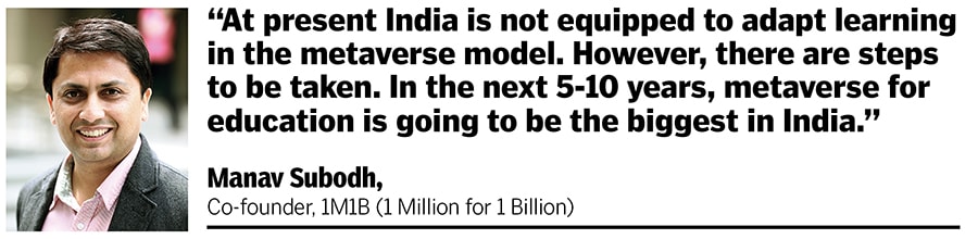 At present, the country is not fully equipped to adapt to the metaverse model. However, there are steps to be taken, explains Manav Subodh, co-founder, 1M1B (1 Million for 1 Billion), a UN-accredited non-profit organisation that is a social innovation and social skills initiative aligned to the United Nations Sustainable Development Goals (SDGs).