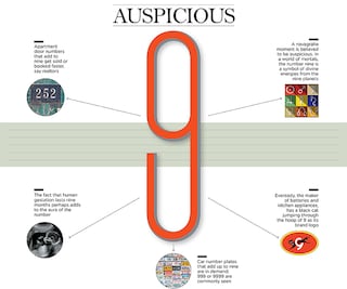 M Murali, managing director, Shriram Properties, the property development arm of the `90,000-crore financial giant Shriram Group, echoes Mahmood’s view. “The number nine definitely has a special advantage. Apartments on the ninth floor, and, more importantly, apartment numbers that add up to nine get sold or booked faster,” he says, adding that such apartments carry a price premium of 3 to 4 percent. “If you go to Andhra Pradesh and Telangana, not only politicians but also prominent businessmen have car number plates that add up to nine 9999 or 999 are almost common car number plates,” says Murali. “It’s an emotional belief, just as one believes in Ganesha or Jesus.”