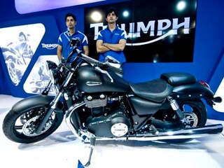 The crowd was suitably impressed. There was a big guy among the crowd who told Joshi that he would be the first customer. He passed him his visiting card. It was made of steel. Joshi looked a little taken aback. Anyway, coming back to the motorcycles, the most expensive motorcycle from the Triumph stable will be the Rocket III Roadster priced at about Rs. 1,750,000. It has got a 2294 cc engine whose power has been restricted to 148 PS.