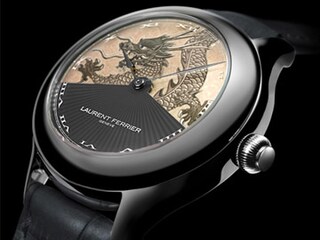 Laurent Ferrier, a promising young brand all of two years old, unveiled the Galet Secret – an ingenious and beautiful watch with a patented complication that opens a “secret” dial by rotating two fan-like opaque sapphire crystals, thus revealing a painted dragon.