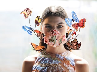 The Fall/Winter 2020 collection was dominated by statement pieces, bold prints, an array of textures, and a feast of the must-have accessory of the season—the face mask. Vibrant lip shades and powdered noses made way for glittering head-gear across the world’s fashion weeks and award shows Lady Gaga now famously made as many changes in artfully created masks as in her funky outfits at the MTV VMAs.