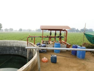 The conventional FPS is a pressure compensated system which ensures that the flow of water is equal all over the farm right from the beginning of the pipes to the very end of the pipes, both on low lying portions of the field and on higher levels. This is achieved through valves which clamp down when the water pressure increases (usually close to the source of water supply) and eases up when this pressure decreases (usually at the end of the pipe). A conventional FPS has tap inlet through which the water supply is taken into the system.This is where Netafim used a little bit of Indian jugaad (improvisation), as water supply is not very regular on Indian farms.