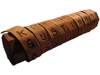 500 BC: The Spartans of ancient Greece invented the Scytale to transport hidden messages. Scytales were long, slender rods typically wrapped in a thin strip of papyrus, leather, or parchment. A message was written on the wrapping, and then the strip was unwound and passed on to a messenger. Only when it was rewound around a rod of the same diameter could the original message be deciphered.
