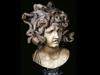 MedusaA feared Greek gorgon, Medusa has been portrayed as having a hideous face with poisonous snakes instead of hair (although in later Greek mythology she has sometimes been depicted as a beautiful woman). Anyone who looked directly at her turned to stone. Medusa was killed by Perseus, who beheaded her by looking at her reflection on a mirrored shield.