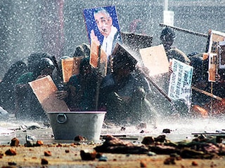 Police used water cannons to disperse supporters of Satguru Rampalji Maharaj, a self-styled godman, outside his Satlok ashram in Hisar, Haryana, on November 18. Rampal’s followers, armed with clubs and stones, tried to prevent the police from arresting the controversial guru in connection with murder charges against him. In a bid to get to Rampal, the police had to evacuate nearly 10,000 people against their will. The fracas resulted in the deaths of at least six people before Rampal, 63, was finally arrested on November 19.