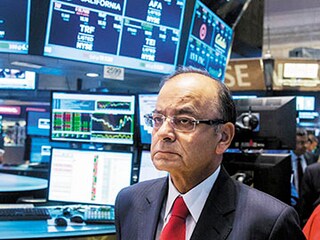 Finance minister Arun Jaitley on the main trading floor of the New York Stock Exchange on June 17. Jaitley, who was on a nine-day trip to the US, met senior officials of the stock exchange, toured the trading floor and rang the customary closing bell at 4 pm to mark the end of the trading day.