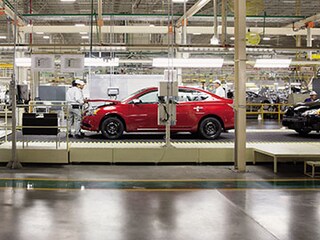 Out past the lobby the factory floor is a massive, gleaming cascade of natural light, fresh paint and hushed automation indistinguishable from state-of-the-art plants in Germany, Japan and the southern United States. Amid bursts of sparks, 190 shiny yellow robots weld together the steel skeletons of one of Nissan’s bestselling small cars (72 percent of the operation is automated). If need be, they can be programmed to weld four different models. Inside the high-speed stamping facility there’s a rhythmic crumping sound as steel parts are formed, 575 strokes per hour, 273,000 parts per month. Yet new technology keeps the decibel level lower than most stamping plants, a boon for workers.