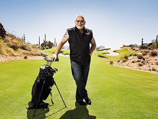 “Ryann, sweetheart,” he says in a gruff voice that booms across the desert. “I hope you brought your wallet.” And with that, his curt but effective swing sends the ball straight down the fairway.
