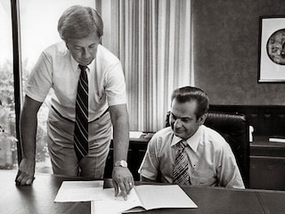 Camera shy: If you Google James Leprino’s picture, you’ll get fellow billionaire John Malone. This 1970s company portrait is the only known image of Leprino Foods’ founder (right)Image: John Prieto/The Denver Post via Getty Images