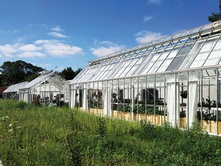 The farm has a restaurant, Gro Spiseri, which uses the edible flowers, herbs and seeds that it grows. There are three to four chefs who decide the menu, which changes about every two weeks and according to season. The meals happen at a single community-style table in the greenhouse, which is heated up by a multifunctional oven in the kitchen.