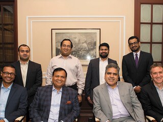 (Seated, from left) Abhrajit Ray, director, Enterprise Strategy, Microsoft India Sunil Kanoria, vice chairman, Srei Infrastructure Finance Raj Jain, CMD, RS Software India Bertrand Launay, COO, Microsoft India. (Standing, from left) Suvankar Sen, ED, Senco Gold Amritanshu Khaitan, MD, Eveready India Keshav Bhajanka, ED, Century Plyboards India Aveek Datta, associate editor, Forbes India