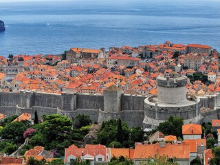 This is only the beginning, since the walls have more than 1,000 steps going up and down throughout its length. People are only allowed to walk in the counter-clockwise direction, which means there is no shoving or squeezing past anywhere on the trail. Once I recover from the initial bout of huffing and puffing, I can see why this is the recommended starting point. The Stradun stretches out in front of us, with the bulbous Onofrio fountain right below. Before the walk, we had filled our bottles with cool drinking water from this fountain, built in 1438 to mark the end of the aqueduct network. Moments later, I can spot the Lovrijenac fortress occupying a small island nearby. Also known as St Lawrence Fortress, or as the Gibraltar of Croatia, this fortress was built in the 11th century on a rock, to prevent the Venetians from using it as a vantage point in their plan to conquer the city again. This citadel on the sea is now open to visitors who want to view the spectacle of the old City Walls from a distance and not just walk on them, and also hosts the annual Dubrovnik Summer Festival.