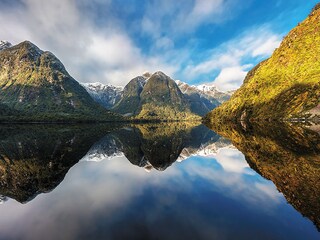 Doubtful Harbour was renamed Doubtful Sound in the early 1800s, when sealers and whalers frequented the 40 km-long water inlet. Somewhat confusingly, Doubtful Sound is not actually a ‘sound’—a geographical feature formed when rising seas flood a river valley—but a fjord created millions of years ago. In the Ice Age, massive glaciers chiselled the landscape to form deep valleys and rifts in the mountains. As the glaciers retreated, the sea rushed in to flood the valley that remained, leading to the creation of the fjord.
