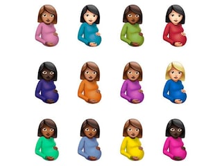The artwork features several variations of the pregnant woman emoji on a white background. This multicolored mosaic is reminiscent of Damien Hirst"s famous "Spot Paintings," which are huge panels featuring colored dots. Art lovers may also see an allusion to the many pregnancy-themed sculptures that the British artist has made over the years, such as "Wretched War" or "Virgin Mother."The art of promotion