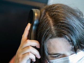To help researchers correlate brain activity with emotional states, two or three times a day, Sarah holds a doughnut-shaped magnet to her head, triggering the device to save the next 90 seconds of neural activity, and she completes a mental health survey. She’s been encouraged to pick moments “when she’s in a very good mood or a bad mood," Scangos said. Also, twice daily, 12 minutes of neural data are automatically relayed to the device company and researchers.
