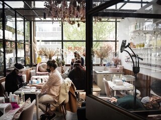 FILE — Customers, masked and socially distanced, return to a beauty salon in London after Britain eased its third lockdown, April 12, 2021. Despite plunging infection levels and a surging vaccine program, parts of Europe are maintaining limits on gatherings, reimposing curbs on travel and weighing local lockdowns. (Mary Turner/The New York Times)[br]