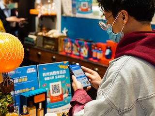 A man scans an Alipay QR code to get e-vouchers at a store on March 27, 2020 in Hangzhou, Zhejiang Province of China. Hangzhou issued 1.68 billion yuan (237 million U.S. dollars) e-vouchers to promote consumption after the coronavirus outbreak. Local consumers can get the e-vouchers on Alipay and have deductions for offline payments. (Photo by Shang Zeyang/China News Service via Getty Images)[br]Ant Group, the Chinese financial technology titan, is set to raise around $34 billion when its shares begin trading in Hong Kong and Shanghai in the coming weeks, which would make its initial public offering the largest on record.