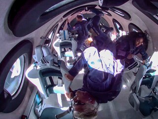 When the fuel was spent, Unity continued to coast upward to an altitude of 53.5 miles. The four people in back unbuckled and experienced about four minutes of floating before returning to their seats.