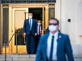President Donald Trump departs the Walter Reed Medical Center in Bethesda, Md., after testing positive for COVID-19 and spending four days at the facility, on Oct. 5, 2020. The New York Times worked with prominent geneticists to determine the genetic sequence of viruses that infected two Times journalists believed to have been exposed to the coronavirus as part of their work covering the White House. (Doug Mills/The New York Times)