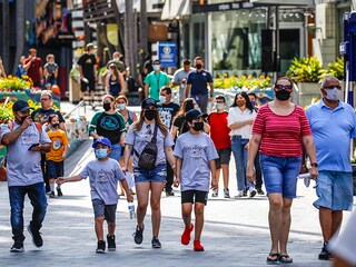 There were many mask wearers as people packed Universal City Walk, in Universal City, CA, Tuesday, June 15, 2021, as the state of California celebrates the end of pandemic-era restrictions, including mask wearing in most situations. Image: Jay L. Clendenin / Los Angeles Times via Getty Images