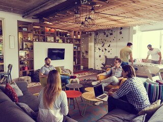Gimmicks or game-changers?Spotify has adopted Agile project management in its development work, whereby projects are broken down into tribes, squads, chapters and guilds. The use of objects (sharks), colourful seating and wall paint can be used to create ‘neighbourhoods’ where tribes are located. In this context, these can be useful tools to provide a sense of belonging, identity and other important social cues that promote the performance and engagement of employees. The outlandish (to many eyes) décor is perhaps accomplishing these nudges in ways that reinforce the formal organisational design of Agile software development teams.