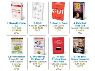 Sifting through a million physical copies is a challenge in today’s publishing climate doing so with a business book is even trickier. Yet 11 authors have managed it since 2004, when Nielsen began tracking book sales. Occupying the executive suite: Tom Rath’s StrengthsFinder 2.0, from 2007, which purports to help you discover hidden talents and put them to use.