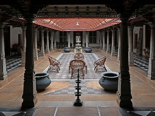 The Chettinadu Mansion, spread over 40,000 square feet (3,700 square metres), has been renovated into a heritage resort and has been featured as a backdrop for Bollywood movies.