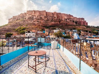 It’s not as blue as I thought it’d be,” I say to Doris as we look out at the city of Jodhpur spread out in front of us from the terrace of our hotel. “It’s not quite Mykonos, is it?” she replies with a laugh, reminding me of my observation when we were looking at pictures of the ‘blue city’ online.
