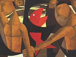 In part, this was a rejection of the Bengal School, and Sher-Gil launched on her career somewhat deliberately. She rejected realism in favour of the Ajanta palette, and evoked the world of miniatures in her flat renditions, although her subjects were chosen from an India she discovered on her travels. A first for Indians, she used models for her paintings, and looked around to spot everyday scenes of life that captured her imagination. She died at 28, but has left her indelible stamp on Indian art in the 20th century.