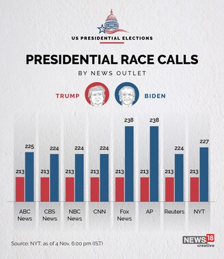 Trump vs Biden: Who is projected to win?Presidential election calls by news outlets as of 6 pm ISTBy Forbes IndiaLast Updated: Nov 04, 2020, 12:01 IST1 minPrefer us on Google Join UsJoin Us OnFacebookTwitterInstagramLinkedinSpotifyYouTube