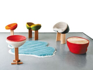 Coiled comfortTwist, helix, roll, gyre and more. These are the words that would correctly describe the latest invention of Yael Mer and Shay Alkalay of Raw-Edges Design Studio. The Coiling Collection, as the series is called, features furniture made of concentric circles. Are you wondering how that is possible? The London designers took woollen felt and then simply coiled it to make furniture. One side of the felt remains untouched so that it retains its soft texture, while the other side is coated with coloured acrylic resin. The pieces are supported on wooden legs held in place with the hardened resin. Thus, the felt becomes both, the structure and the upholstery. The Coiling Collection has been inspired by composite materials, which are a combination of bonding and structural materials similar to cob (formed with clay-rich soil, straw, sand and water). Seven prototypes of the collection were featured at Paris’ Fat Galerie. More at raw-edges.com