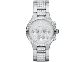 DKNY’s Glitz collection of crystal encrusted watches is the queen of bling. The NY8315, for instance, has more than a hundred clear crystals in its polished silver stainless steel bracelet and case, while the NY8299 is more dramatic, with crystals embedded in the entire length of the watch. dkny.com