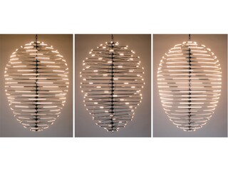 HomeThe glowing orbThe Nebula Hive, designed by British sculpture artist Ivan Black, is a traditional chandelier for the 21st century. Hand-polished and nickel-plated, the Nebula has an integrated motor that initiates bursts of energy, which guides a playful and hypnotic performance of illuminated and outstretched brass arms. As the mechanical energy dissipates, the Nebula Hive continues to morph into shapes reminiscent of a double helix or a distant celestial orb, before settling back into its lustrous original state. It connects to a proprietary iOS app to control luminosity, speed, direction, and patterns of rotation with the swipe of a finger the app is also equipped with a programme-setting function. ivanblack.com