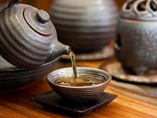 A range of teaware is used to brew the perfect cup: Teapots, cups, glasses (for brewing and drinking), gaiwan (serving as a teapot or cup) and a tea tray with an in-built draining board. A flat-bottomed teapot allows long and thin tea leaves (such as Dragon Well) to nestle comfortably at the bottom a round one is perfect for rolling round leaves (Jasmine tea). Teaware is commonly crafted from clay or porcelain. Yixing teaware, made from zisha or ‘purple sand’ clay sourced from the mountains of Yixing—these are highly prized, with prices ranging from 20 to thousands of yuan—are ideal for black and oolong teas, and aged pu-erh.