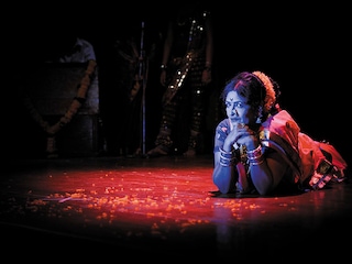 It is interesting how gender itself becomes a playground for many of the pieces. Akshayambara, written and directed by the Bengaluru-based Sharanya Ramprakash, introduces a female performer (played by Ramprakash) into the male-dominated world of professional yakshagana. In a remarkable subversion, she plays Duryodhana rather than a character from the limited female repertoire of the form. Yet, Ramprakash does this without creating any illusion of manhood. “That is the most empowering aspect of a performance. When I come on to the stage, and say I am Ravana, people should be ready to go with that,” she says.