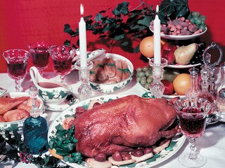 One of the earliest known food photographs, taken by French inventor Nicéphore Niépce, dates back to 1827 and shows a table laid out with a bowl, a dish, a bottle, cutlery and other paraphernalia. Although Niépce’s work can be considered more as an example of technological advancement rather than artistic endeavour, others followed rapidly in his footsteps: Henry Fox Talbot photographed basketfuls of fruits in the 1840s, and coloured chromolithographs of artistically arranged food preparations appeared in French chef Jules Gouffe’s The Royal Cookery Book in 1867.
