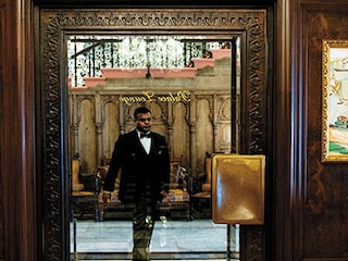 Now, down the corridor. Take a left into the stairwell of the hotel’s heritage wing. Before you take the stairs, step into the Palace Lounge. Amid the hushed silence of its plush interiors, resting on its sombre wooden walls, are a couple of VS Gaitondes, a Ram Kumar, and a Jehangir Sabavala.