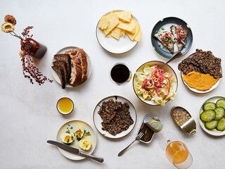 Rhodora’s staff members, who rotate duties like waiting on customers and popping sardine tins to plate food orders, congregate weekly to generate simple menu ideas based on what’s available from the bar’s dozen or so approved vendors. Cheese boards and mushroom broth are staples.