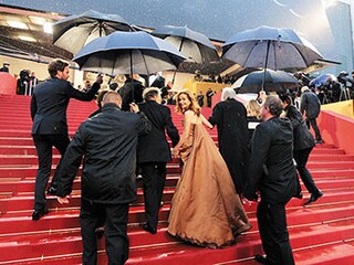 It is a truth universally acknowledged that an international film festival, in possession of good films, must be in want of sexy glamour on its red carpet. There’s no other way to get media attention and screaming fans, regardless of how good your films are. Yet, something as banal as the weather, of all things, decides how sexy a festival can be. In a way, the rain decides the fate of all that global media focus, advertising revenue and brownie points with the sponsors. The Cannes Film Festival is in May, and it’s usually warm and sunny on the French Riviera. The ‘bombshells’ preen on the red carpet, or unfurl on the Croisette, in various stages of décolletage and ‘pout-age’ for the paparazzi. But nothing is as unsexy as a gorgeous Hollywood star, in a spectacularly plunging gown, slithering onto the red carpet at the Palais des Festivals in pouring rain, with an umbrella in one hand, and her dripping fancy-schmancy train in the other, while all the world’s cameras capture her glorious embarrassment forever. Leonardo DiCaprio, Carey Mulligan, Amitabh Bachchan and the team of Gatsby Le Magnifique (as the French call The Great Gatsby), as well as jury members Steven Spielberg and Nicole Kidman, got wet carpet welcomes as they ducked under weeping umbrellas at Cannes last year, as did Isabelle Huppert attending the world premiere of Michael Haneke’s Amour in 2012.