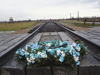 They say that part of the reason why the Taj Mahal makes such a grand impression is that to see it, you first go through a dark, narrow archway. Then you are suddenly face to face with something magnificent. Now, I know how it works. I enter Birkenau through a red brick building, and suddenly I am face to face with vast emptiness. A railway track guides me to some trees at the horizon. To my right and left there are sheds that seem to stretch on until the end of eternity. I feel small and powerless.