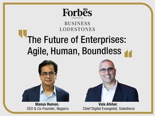 In a world where disruption is constant, enterprises cannot afford to stand still. The future belongs to organizations that are agile yet empathetic, digital yet deeply human. This is the central theme of a compelling conversation between Manas Human, CEO & Co-founder of Nagarro, and Vala Afshar, Chief Digital Evangelist at Salesforce, on Forbes India presents Business Lodestones.