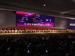 Corporate leaders speaking at the event praised the government's performance and Modi's leadership. Mukesh Ambani, Chairman and managing director, Reliance Industries said that Modi executes whatever he envisages. No other leader has changed the mindset of so many people in such a short time, he said adding digitisation will make India one of the strongest countries in the world. He also pointed out that Reliance Industries's cumulative investment in Gujarat was Rs 2,40,000 crore and this was the highest investment made by any Indian company in a single state. (Reliance Industries owns Network 18, publisher of Forbes India.)