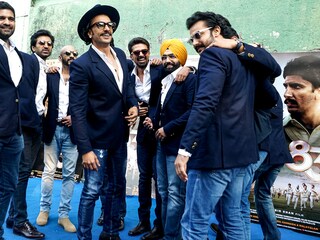 Ranveer Singh and his fellow actors attend the "83" film photocall in Mumbai, India, December 21, 2021. Slated for release on 24th December, the film is based on the true story of India’s iconic 1983 World Cup victory against the West Indies, with Ranveer playing the legendary captain Kapil Dev.Image: Prodip Guha/Getty Images