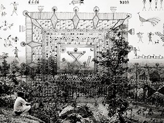 The first set of works was completely narrative, very much about real things, like the year when a political party raided the village. Then the work started to get more abstract. The ‘Sweet and Salty Sea’ is about birds that are drawn to the sea, and how the sea is both a destroyer and nurturer. ‘Heaven and Hell’ depicts a perfect world that is destroyed when it stops raining forever. There is a never-ending forest (‘A Forest of Trees’), or ‘Gods of the Home and Village’, which is a sacred map of all the different times at which the gods are invoked. There’s a work about ants, who are revered for their industriousness in adivasi culture, which is why The Great Serpent lives in the Home of Ants. About people migrating to the city, about rain, Mahadev and Parvati spinning their eternal web… our monkey ancestors.
