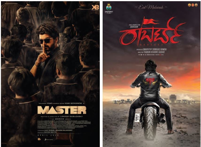 While Hindi cinema saw a tepid response with lower theatre occupancies, Southern states were an exception to the rule, where occupancies varied from 30 percent to 100 percent. Tamil film Master (left) and Kannada film Roberrt (right) ran to packed houses despite the pandemic