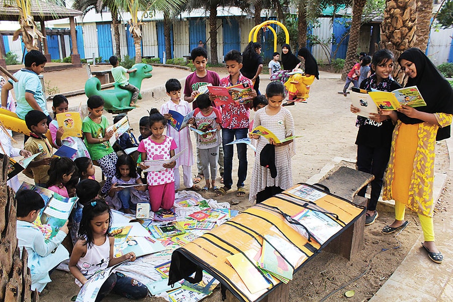 Children gather at a park in Mumbra, Mumbai, every evening to read books brought by NGO Parcham. Civil society organisations are key to creating on-ground impact of philanthropy