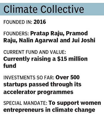 Climate Collective is a not-for-profit organisation that also includes a VC seed fund. The founder, Pratap Raju, was a JP Morgan banker in New York. Pratap, who grew up in the US, moved to India and turned entrepreneur in IT, and later in the solar and wind project development space for over five years before starting Climate Collective in 2016—a solar hackathon was one of its first activities.