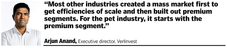 “Pet as a category didn’t need a lot of convincing for Verlinvest. In India, we may be early, but when we dug into it, we felt the industry dynamics are quite compelling for the long term. Most other industries created a mass market first to get efficiencies of scale and then built out premium segments. For the pet industry, it’s building the market starting with the premium segment first given that’s the pattern of pet adoption. Hence, the scope for high margins," says Arjun Anand, executive director, Verlinvest.